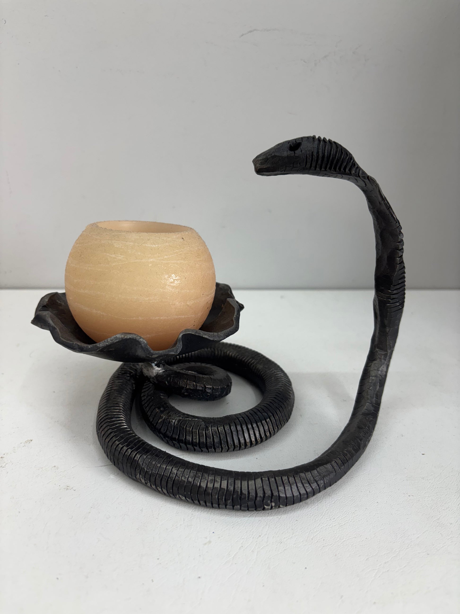 Rankų darbo, tikras kalvio gaminys. Metalinė žvakidė - gyvatė.